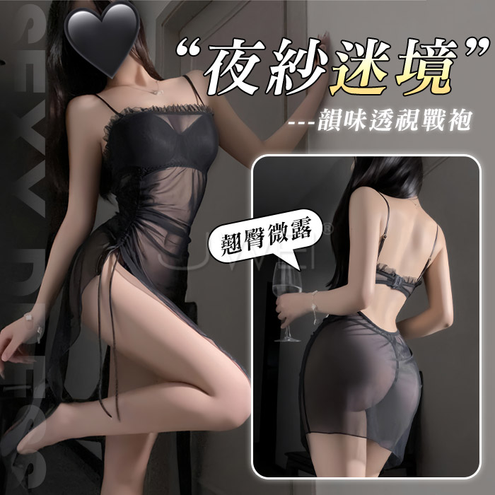自然垂墜的黑色柔紗讓身材曲線畢露,