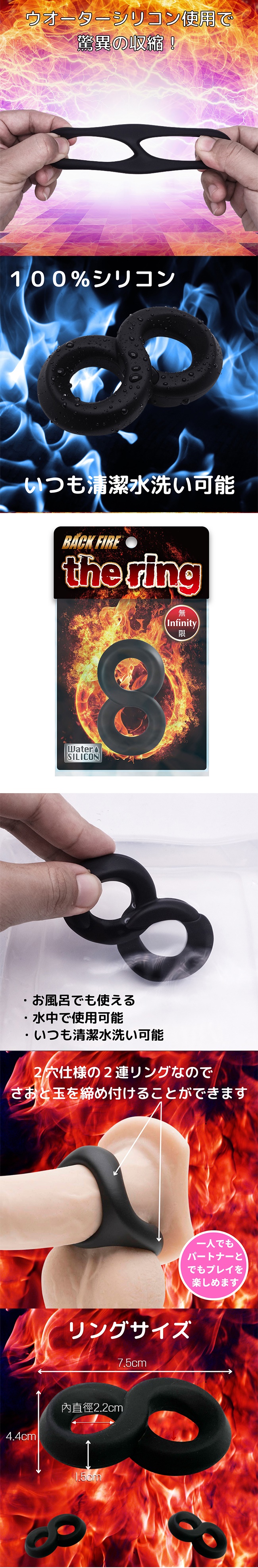 高級素材のウオーターシリコンを使用し、しっかり締まって、メチャクチャ柔らかいというリングにとって最適な収縮性を実現しました!