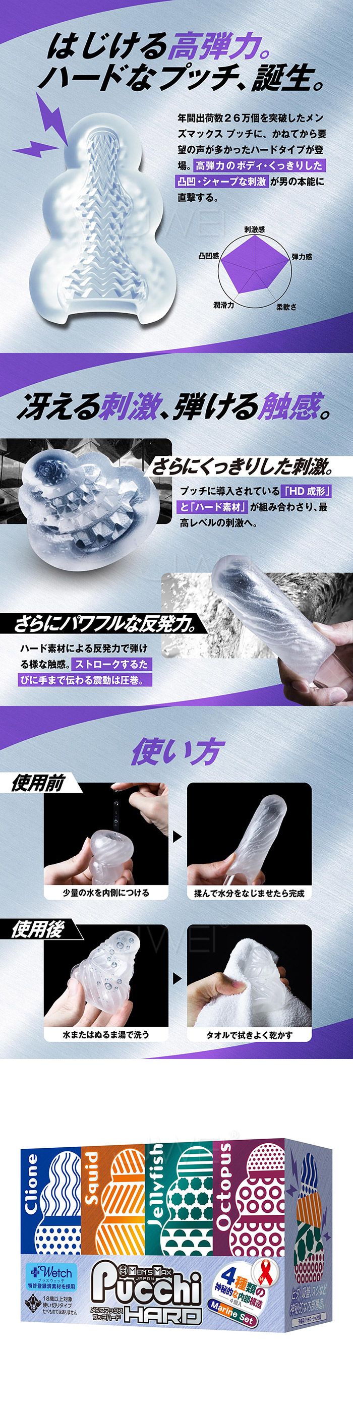 | 日本原裝進口MENS MAX . Set Box Marine 自慰套4入組 無需潤滑液 只需要水 即可使用