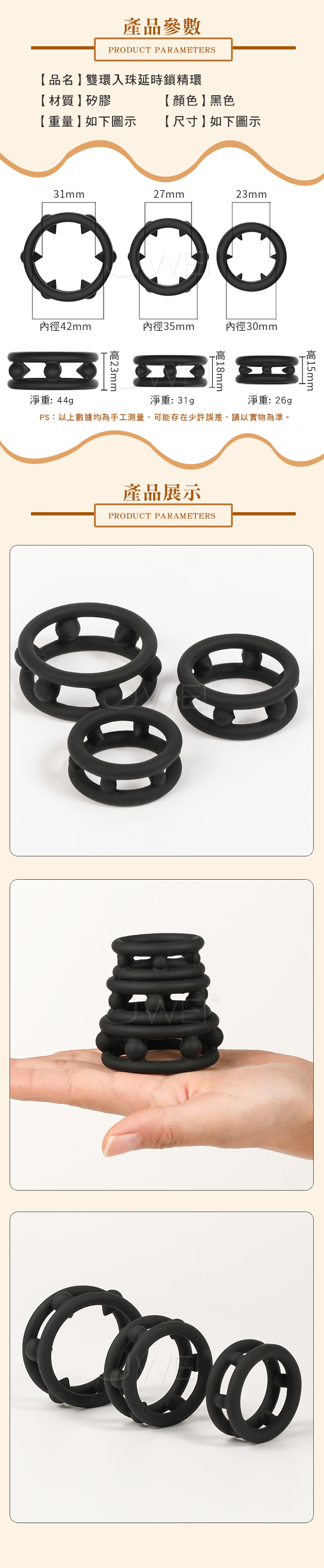 | SEXLOVE.雙環入珠延時鎖精環- 中 (內徑3.5cm)