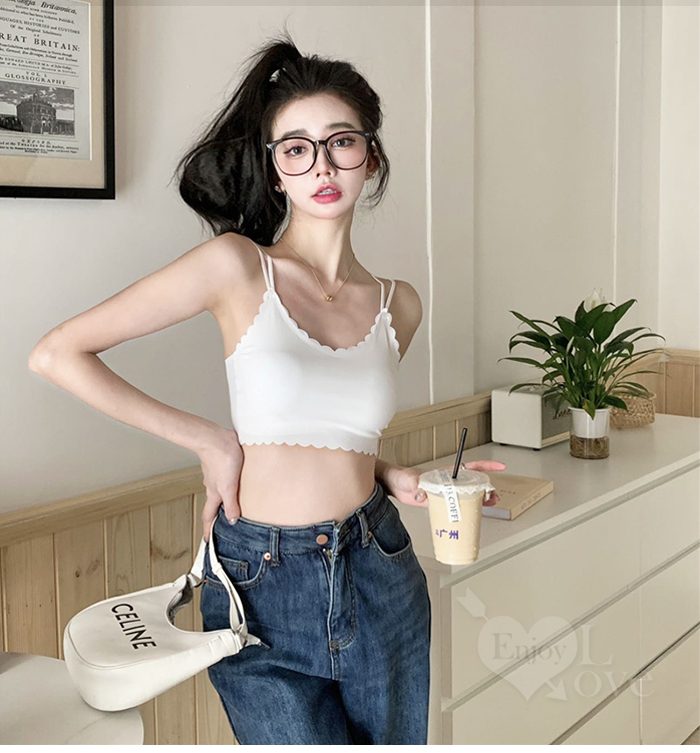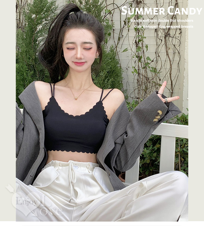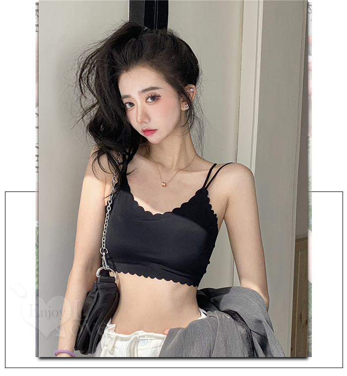 冰絲柔滑寬版肩帶修身裹胸背心﹝黑﹞
