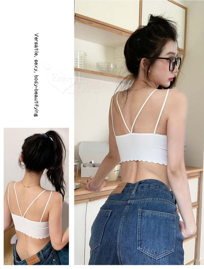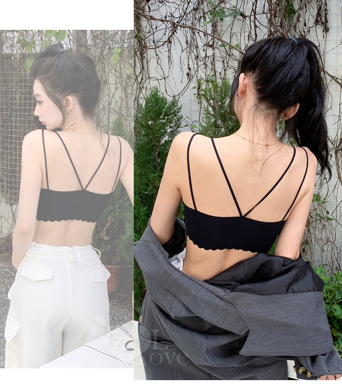 雙細肩後V字美背圓邊設計性感百搭內衣﹝黑﹞