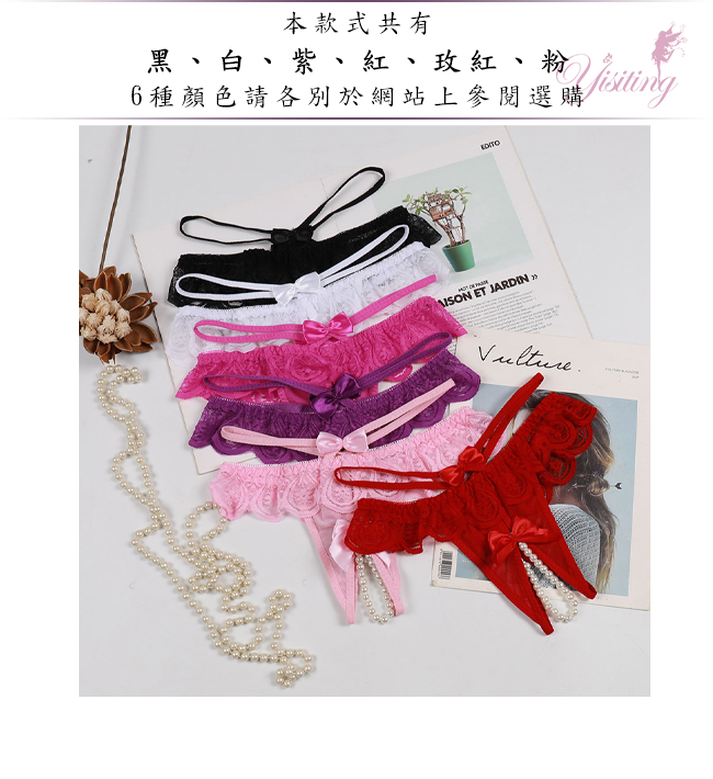 浪漫情人!輕膚柔紗拼接蕾絲迷人珍珠開襠丁字褲﹝紅﹞