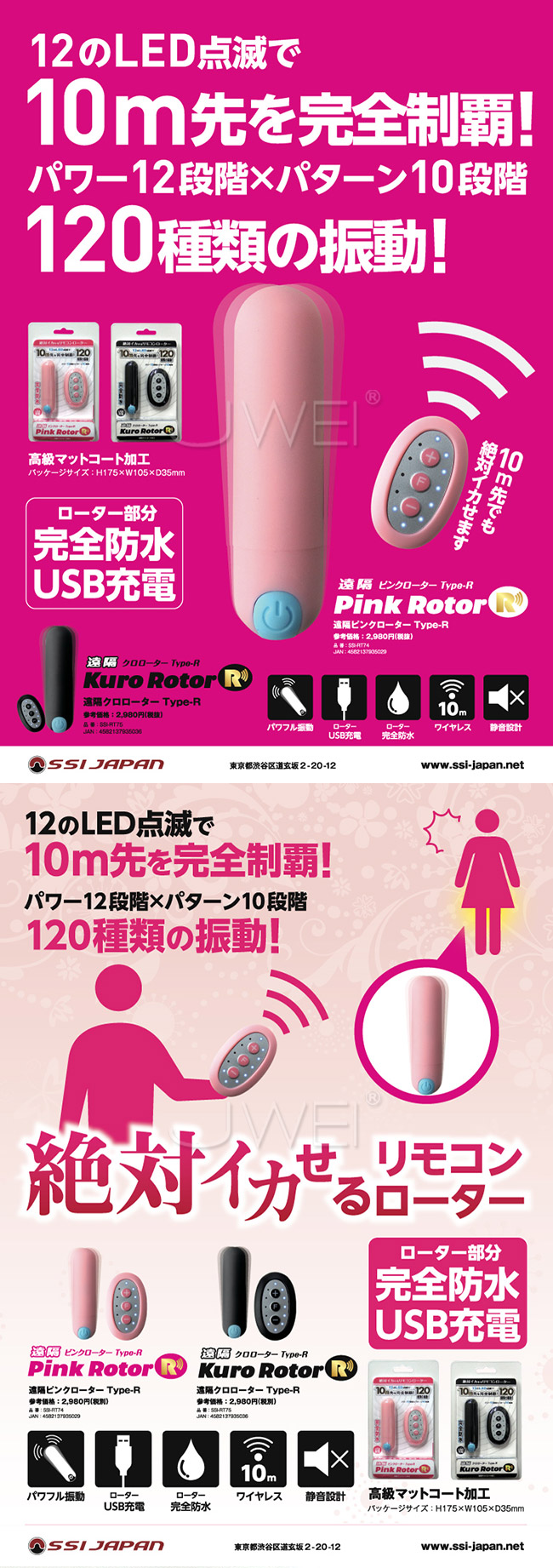 | 日本原裝進口SSI. 遠隔ピンクローターType-R 12x10段變頻遠端操控遙控跳蛋-粉色