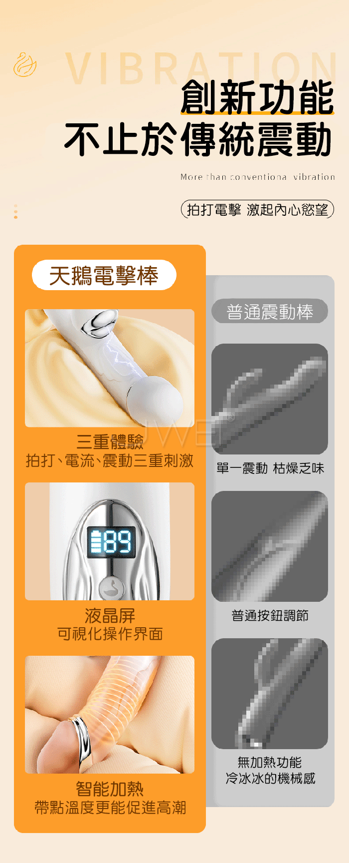 ►您現在的位置:首頁>天鵝.8頻拍震+8頻微電流電擊 深層高潮仿真龜頭加溫震動棒
