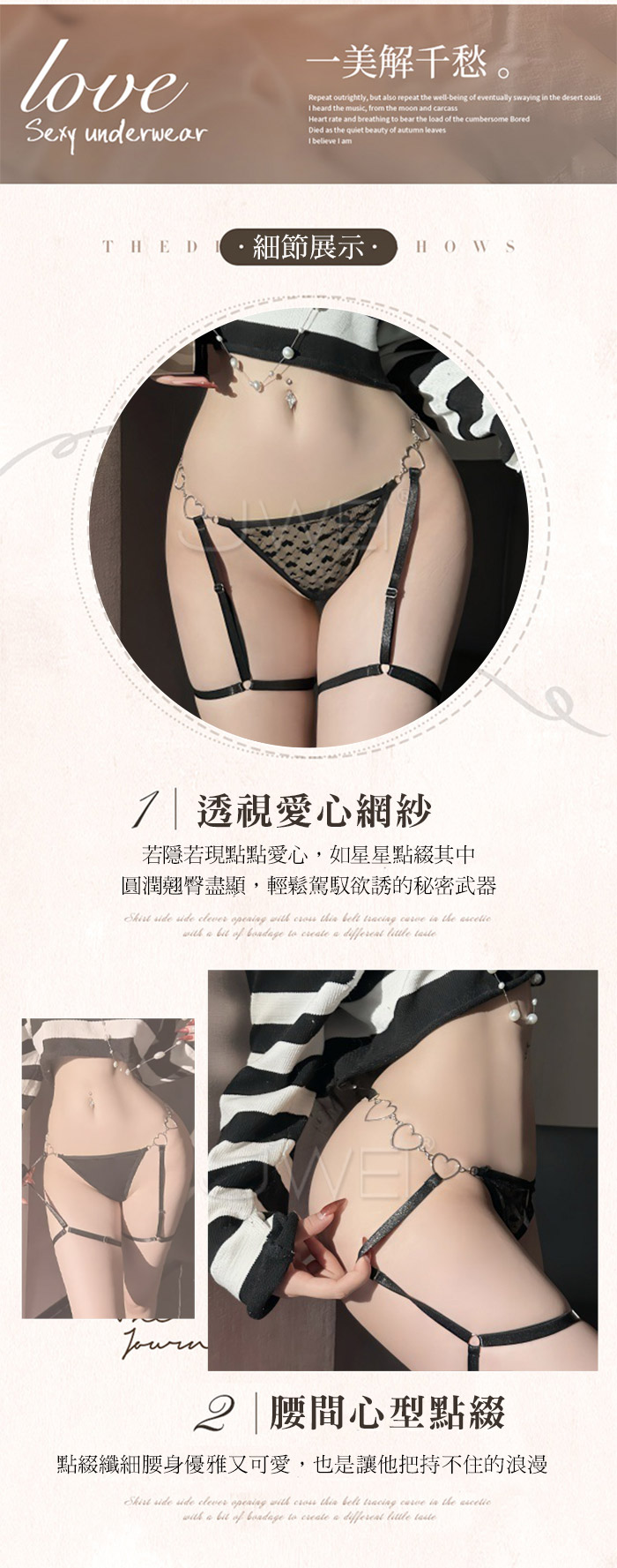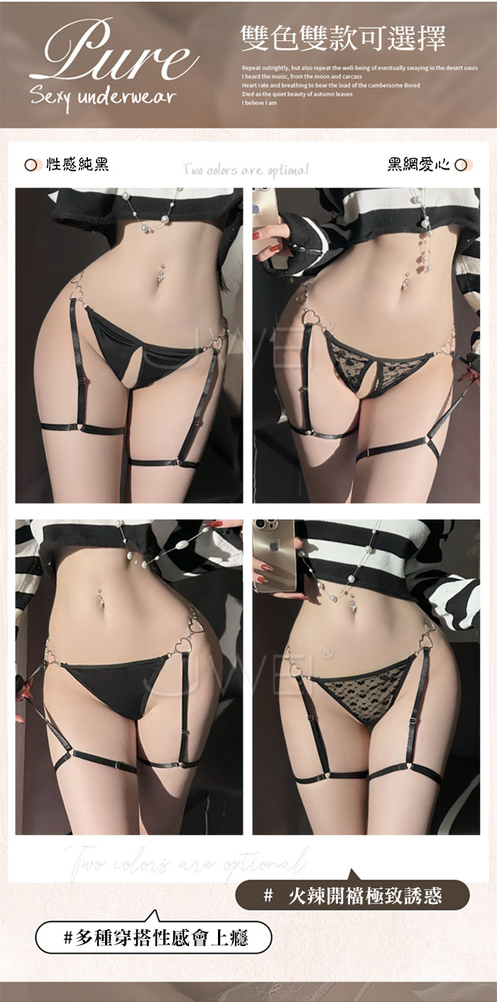 | 極夜誘惑.愛心鏈條綴腰吊帶低腰丁字褲【黑】