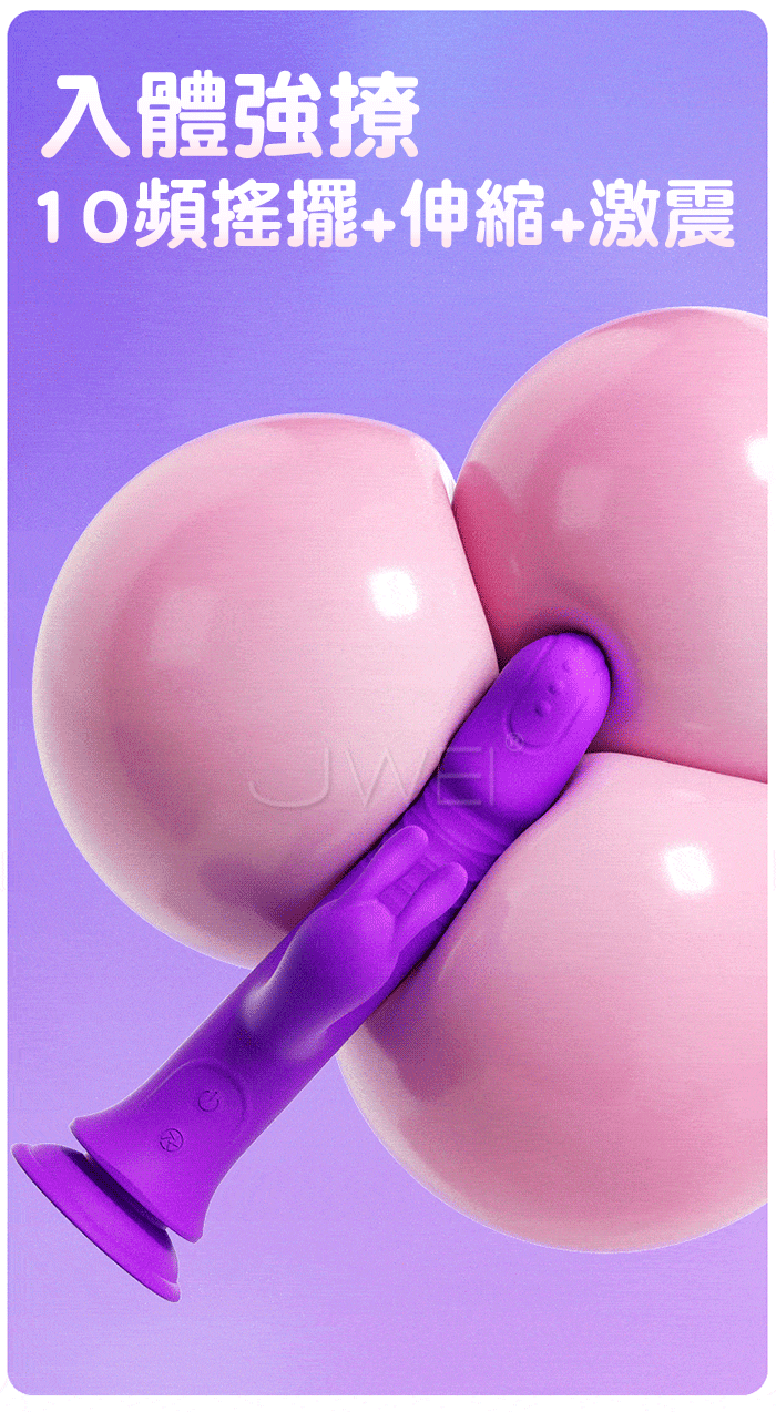 強力吸盤固定,入體強撩,10頻搖擺+伸縮+激震,強動力不卡機,勇猛強勁看的見~