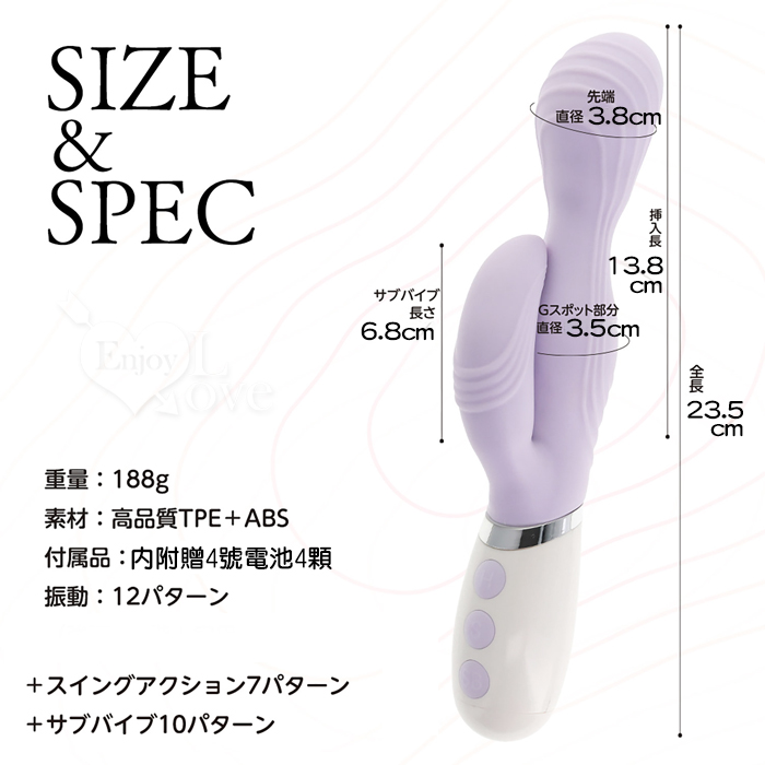 ►您現在的位置:首頁>日本NPG.やわらかバイブ 肌感触 12頻頭震+7搖擺+10副震多功能柔和按摩棒-紫