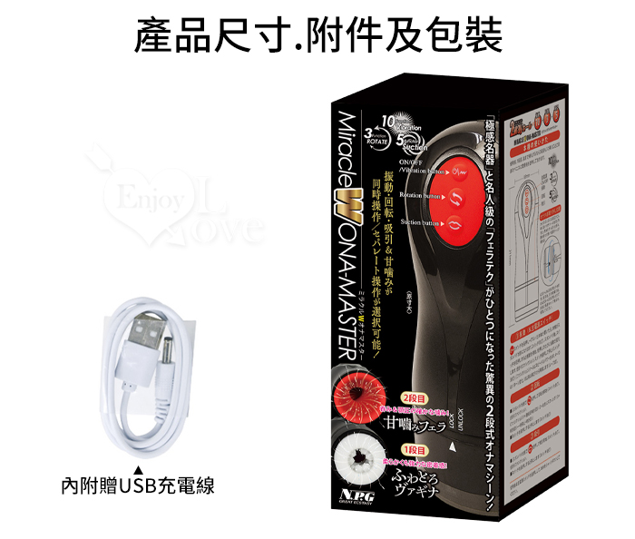| 日本NPG.奇蹟Wオナマスター 2段式10x3x5震動迴轉吸引專家級口交技巧自慰器