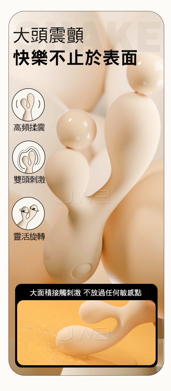 大頭震顫,快樂不止於表面,高頻揉震/雙頭刺激/靈活旋轉,大面積接觸刺激不放過任何敏感點