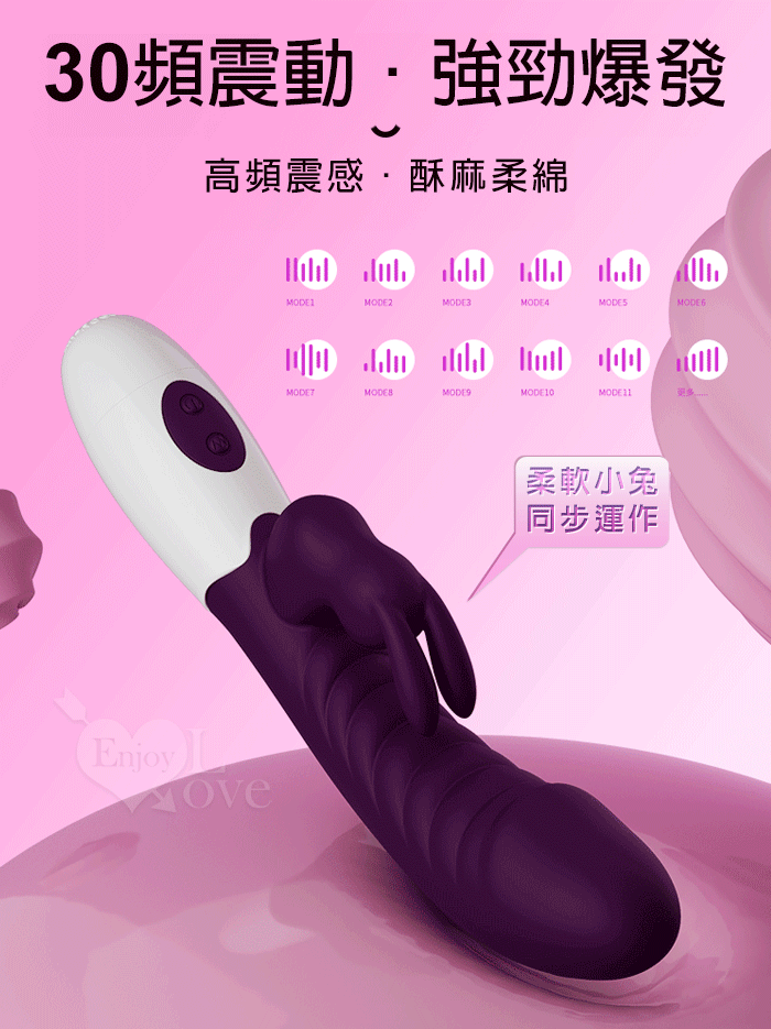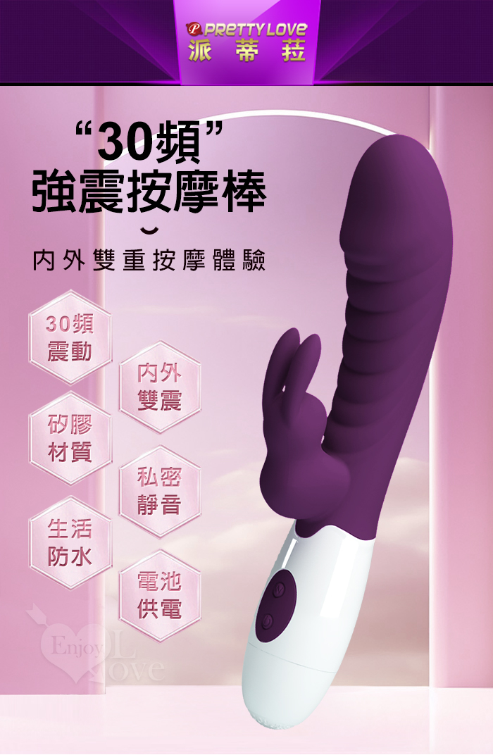 PRETTY LOVE 派蒂菈 ‧ 頑皮兔 內外雙重30頻雙頭同震按摩棒-深紫