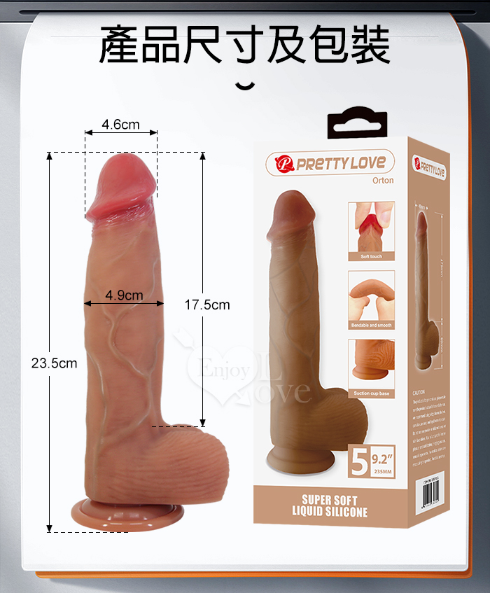 派蒂菈 ‧ Orton 奧頓 9.2吋視覺感官雙衝擊矽膠高仿真吸盤老二﹝西方勇猛型﹞