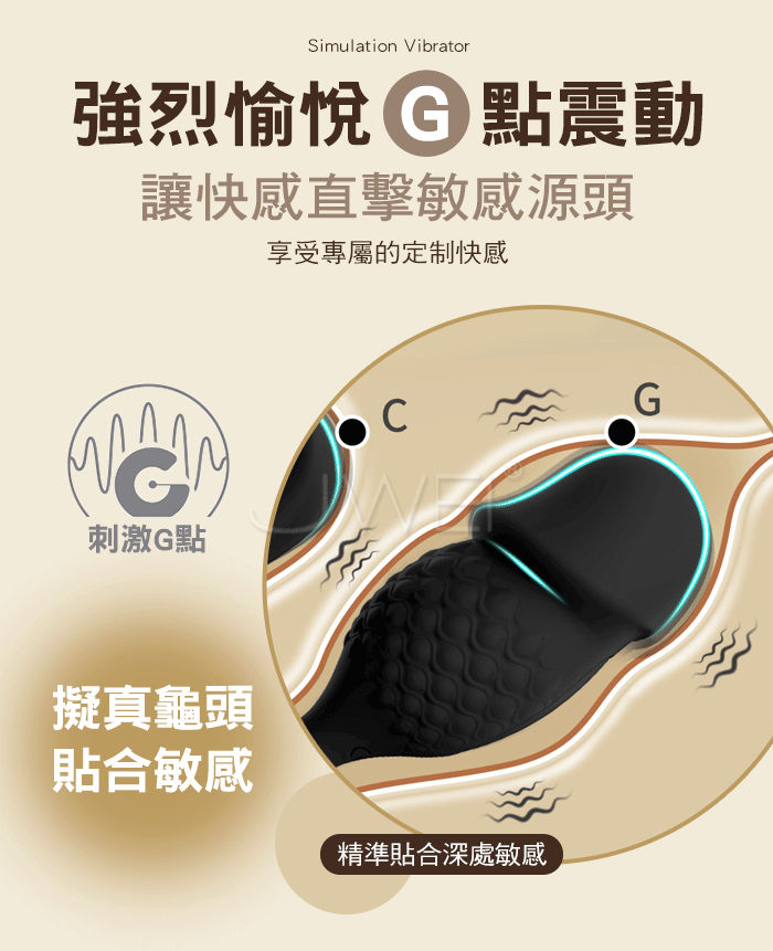 仿真龜頭造型,強烈愉悅G點震動,讓快感直擊敏感源頭,享受專屬的定制快感