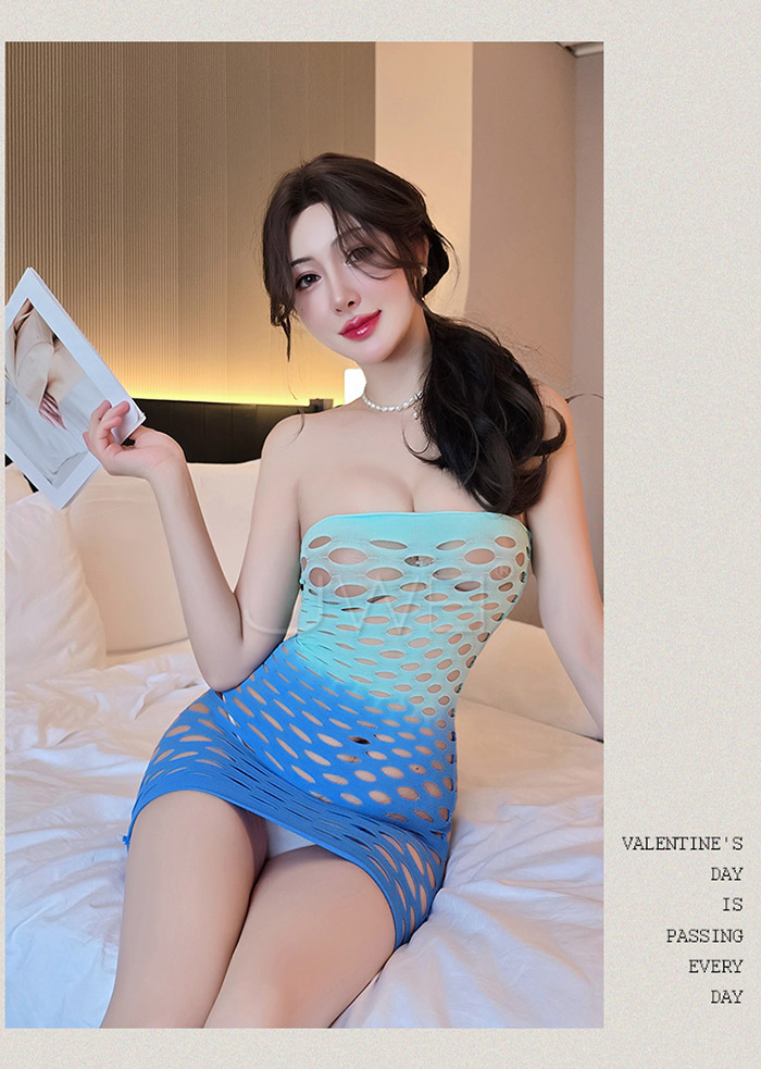 ►您現在的位置:首頁>暗夜天使.漸變色一字領大網情趣連體性感貓裝【漸變藍】