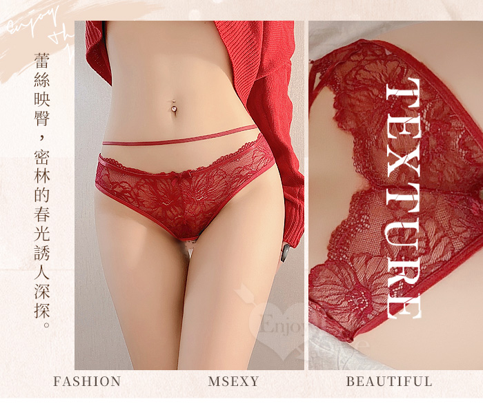 | 空氣感花蔓透紗·纏腰細帶|開襠免脫情趣內褲﹝紅﹞