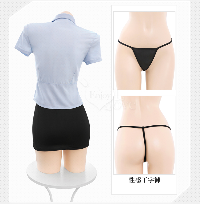 | 教官角色扮演服!俐落挺版側開衩微傘擺短襯衫高腰包臀裙四件式套裝