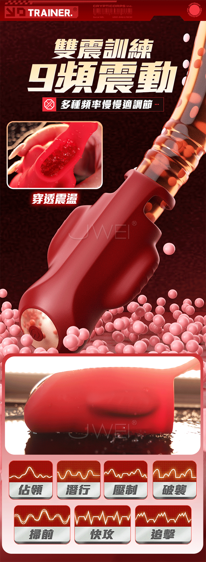 雙震刺激,9頻震動,多種頻率慢慢適調節