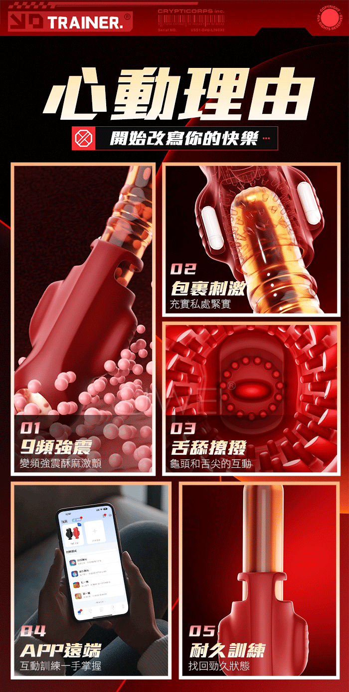 ►您現在的位置:首頁>丁丁.10頻雙馬達強莖舌撩震顫 APP智能遠控自慰訓練器【紅色】