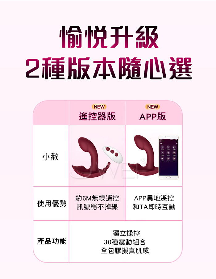軟彈雙震,秒潮尖叫,全身水洗出玩多重愉悅前戲 外出穿戴,互動調情,多段變頻每一種都爽出新花樣 30種震動組合,從温柔挑逗到欲罷不能,雙頭均為3檔頻7檔變頻 產品規格 ■尺寸:大小詳如圖片標示 ■材質:矽膠 ■特點:10頻震動、APP智控