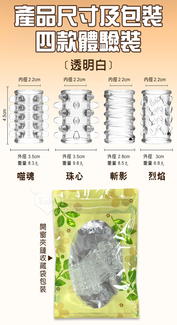 好戰4潮套.入珠纏綿顆粒組合~鎧甲延時鎖精陰莖加強環~成人性趣輔助用品-4款體驗裝﹝透明白﹞