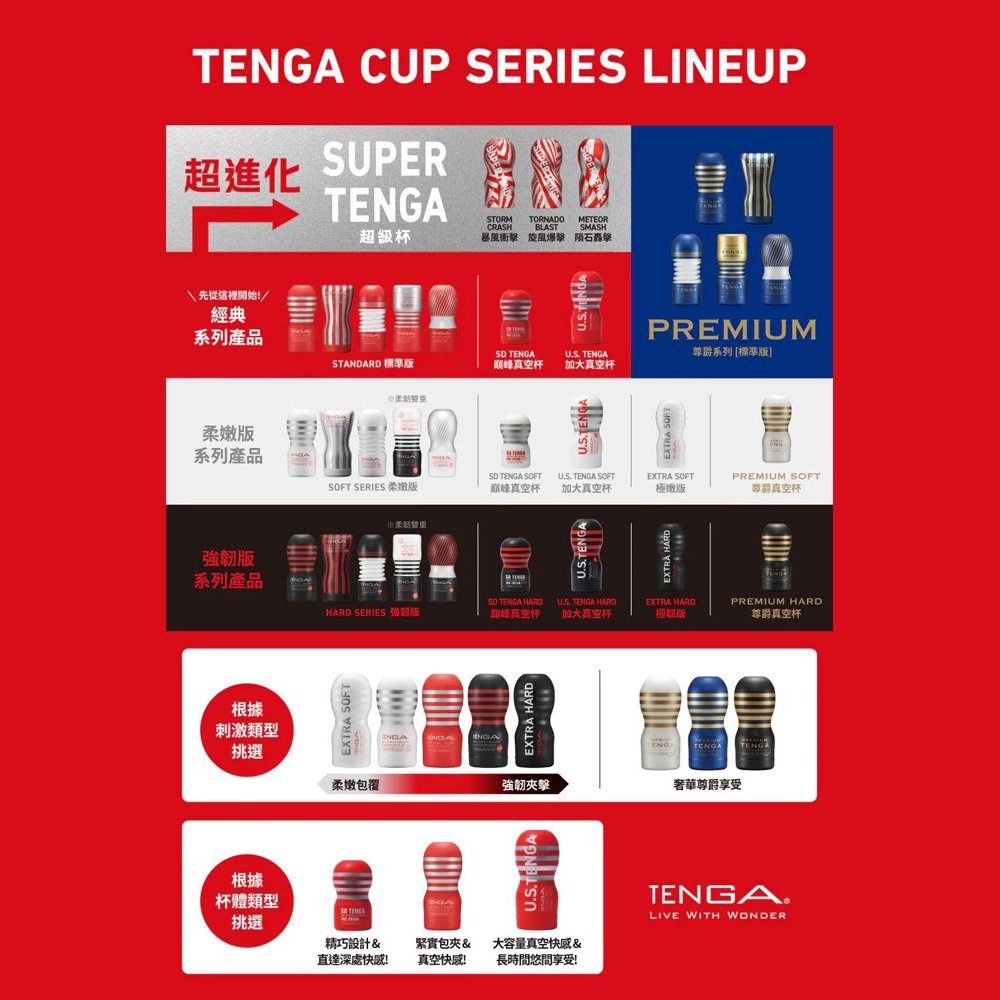 經典TENGA升級版,尺寸略大、膠體份量增加20%,擁有超立體、高密度內部紋路設計,