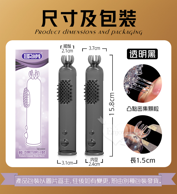 取悅 ‧ 觸鬚爆芽狼牙加強套-59個密集顆粒刺激G點~槍槍爆擊﹝透明黑﹞