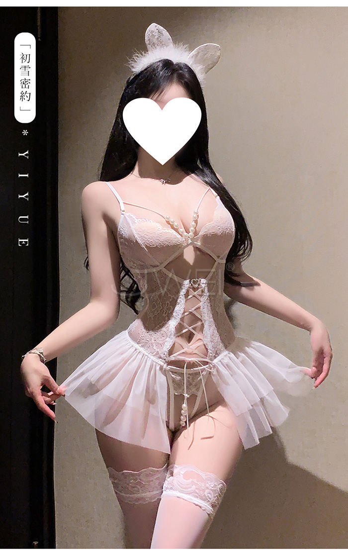 ►您現在的位置:首頁>串珠織夢.深V珍珠飾胸蕾絲繫帶花邊裙擺開襠連體衣【白色】
