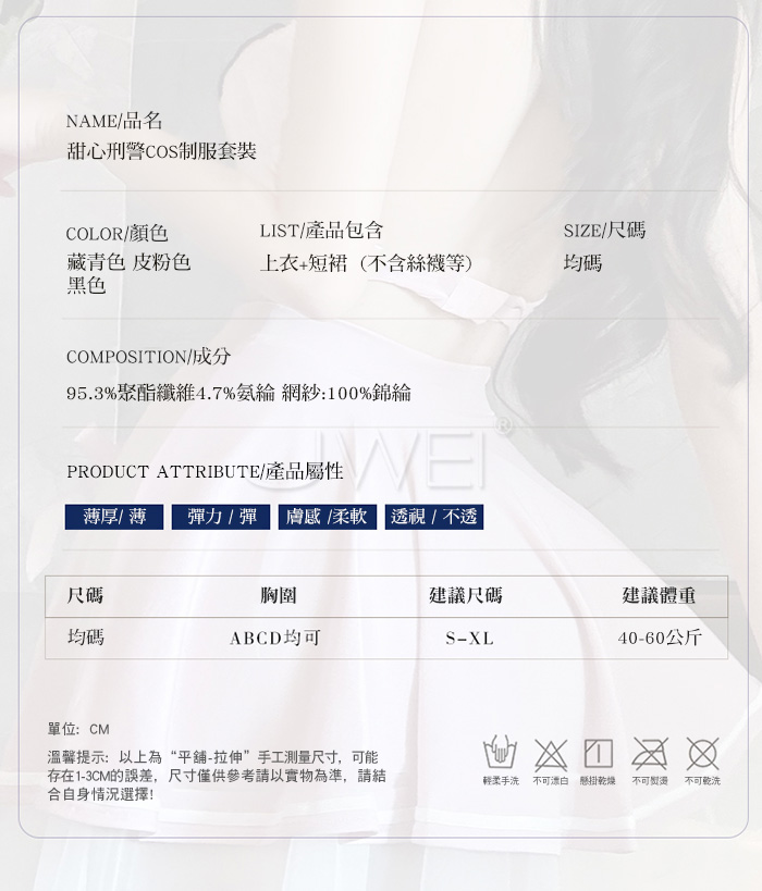 ►您現在的位置:首頁>甜心刑警.胸前交叉繫帶清純百褶透視白紗COS制服套裝【上衣+短裙-黑+白】