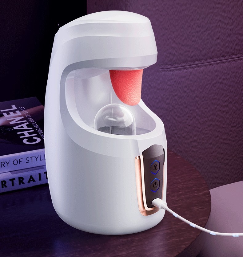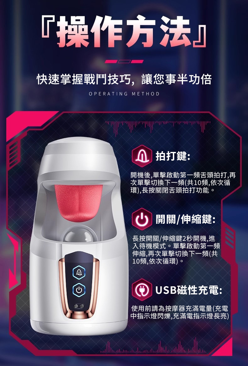 AAV 吸精戰士.舌舔拍打10頻震動+伸縮飛機杯 仿生舌舔暴力吸精器(白色)
