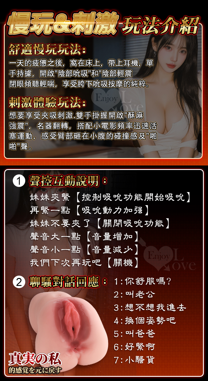 | 聞音美熟女 ‧ 全智能聲控對話互動 12X吮吸+12X震動~真實の私完壁肉感雙層潮紅溫暖通道電動名器﹝附耳機﹞