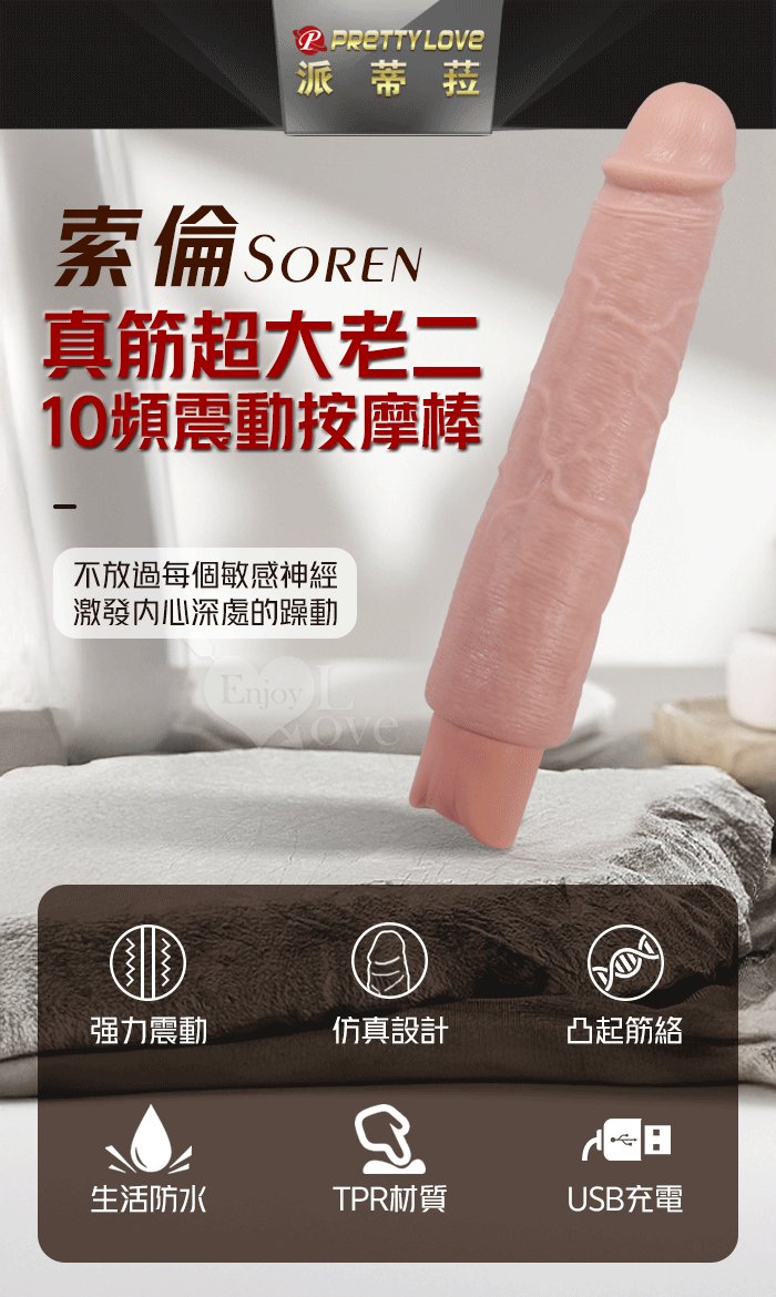 | 派蒂菈 ‧ Soren 索倫 10段變頻震動 膚色肌仿真筋絡超大老二造型充電按摩棒 NO.4﹝9.9″ 25cm﹞
