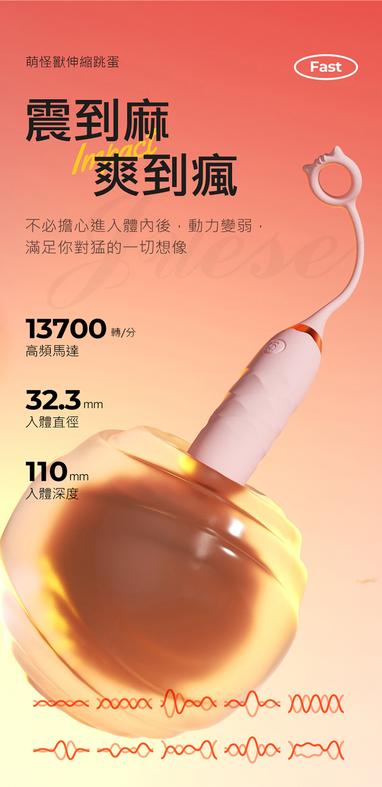 此溫柔時細膩該爆發時狂野!小小的身體,大大的能量,突破傳統結構,把功能更強大的低音馬達放入跳蛋內動力增強,伸縮更快。