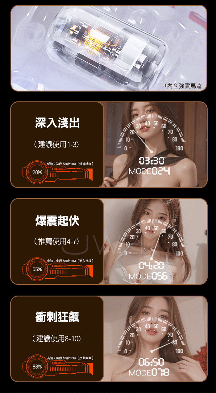 狂抖猛夾 爆震老二,整杯震動摩擦 更爽更刺激,長距包裹活塞酣暢淋漓 入口加寬 長距包裹,約95%大面積摩擦刺激,再也不用委屈大老二了 爆震抖臀 狂飆夾蠕,內置爆震馬達 快感來襲,宛如狂野女郎在扭臀 四國女友 魅惑享受,送高清音質耳機聲浪不止,主打就是陪伴! 產品規格 ■尺寸:大小詳如圖片標示 ■材質:TPE+ABS ■特點:10頻震動、四國語音、免持砲架、加溫