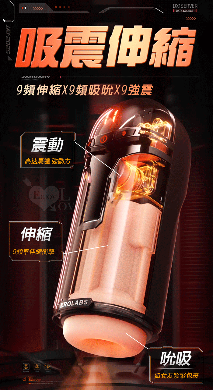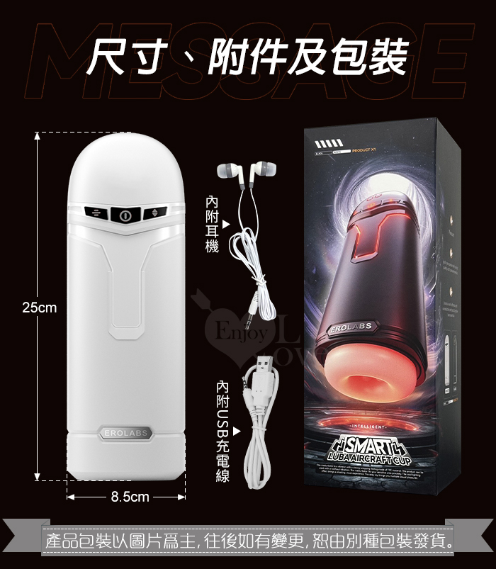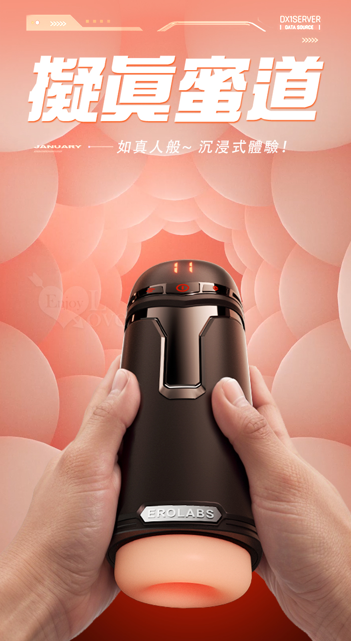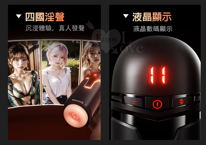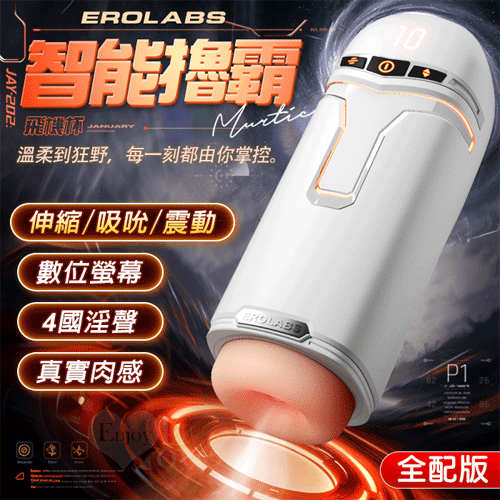 EROLABS 擼霸全配版 ‧ 智能伸縮/吸吮/震動/語音 緊實肉感自慰鍛練杯﹝液晶數碼9頻伸縮X9頻吸吮X9強震+4國淫聲+耳機﹞白色