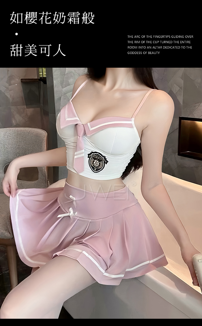 ►您現在的位置:首頁>甜校迷境.純愛撞色制式領帶白褶裙學院系cos套裝【上衣+裙子】粉色