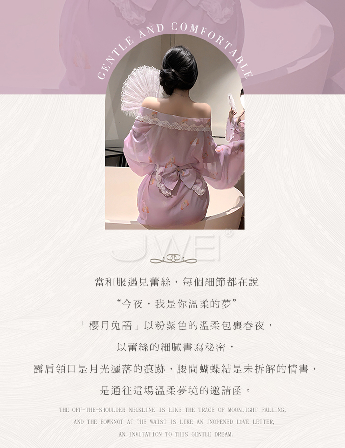 ►您現在的位置:首頁>櫻月兔語.蕾絲滾邊露肩領口可愛兔子印花日系和服套裝【和服+蝴蝶結腰封】