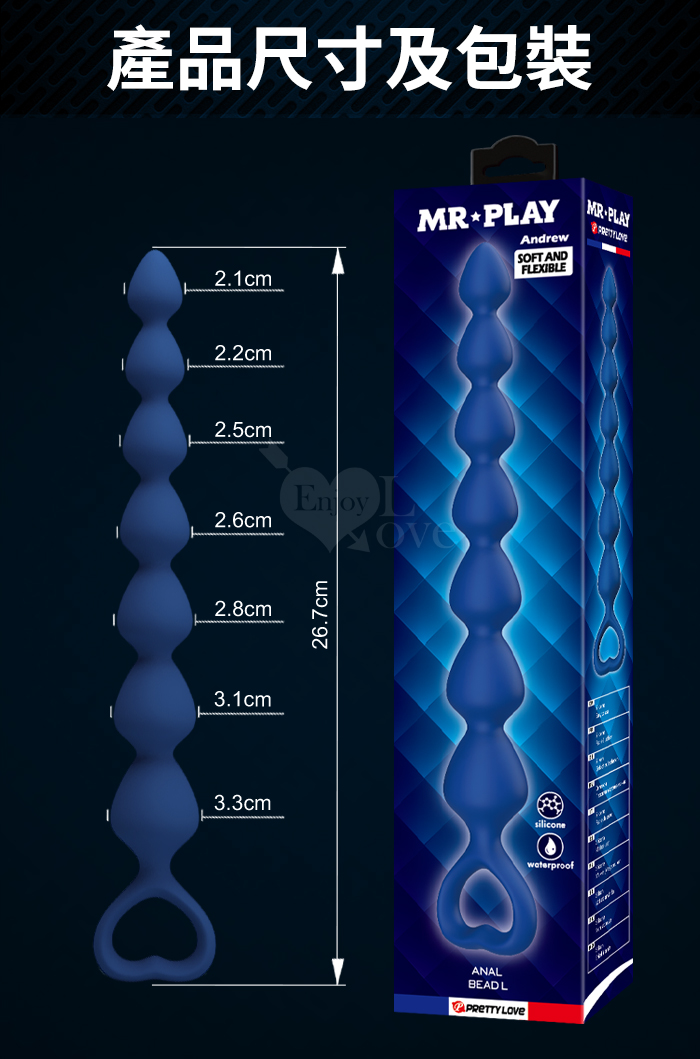 MR‧PLAY ‧ Andrew 安德盧~男女通用愛心造型層層漸進拉珠後庭按摩棒-M﹝輕鬆入體/舒適矽膠親膚﹞
