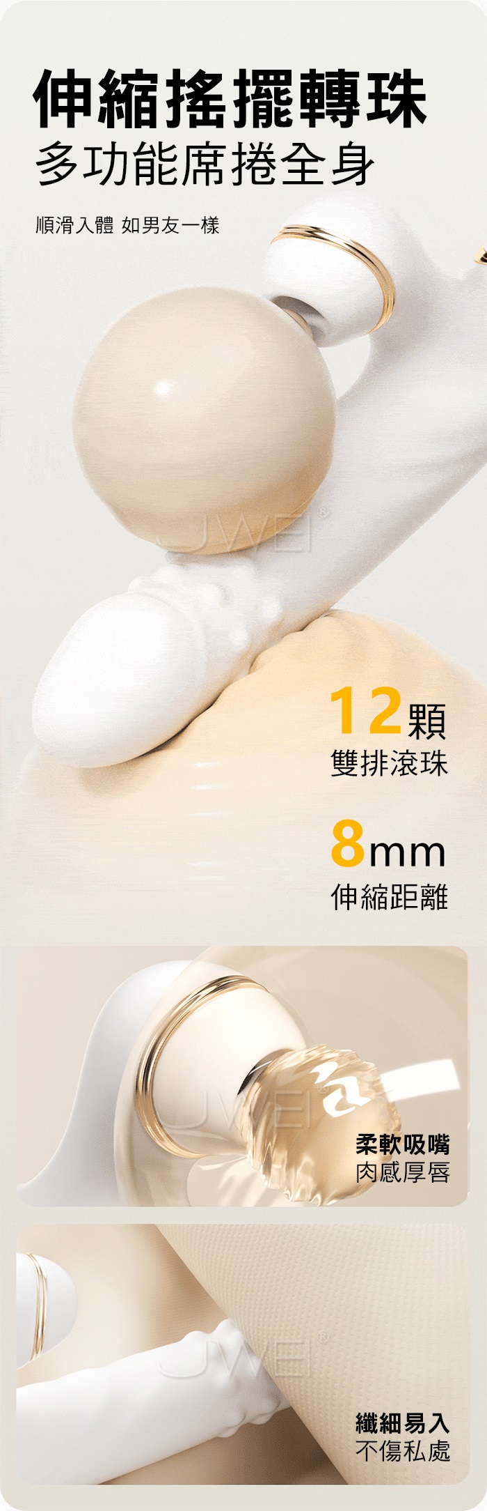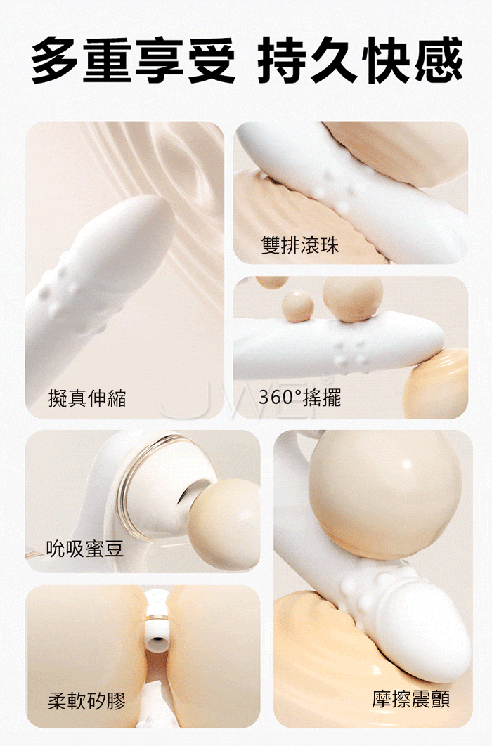 轉珠刺激伸縮攪動,12顆 雙排滾珠,360度旋轉搖擺