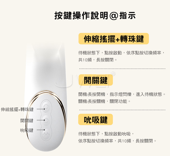 ■功能: 10頻吮吸、10頻伸縮搖擺